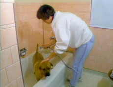 In this episode, Ron visits Martha, a pet owner who finds that giving her dog Jake a bath was anything but relaxing..With only a standard bathtub and a fixed showerhead, she was stuck using a bowl to rinse him, leading to water slopping all over the floor and a very damp, unhappy experience for everyone involved.