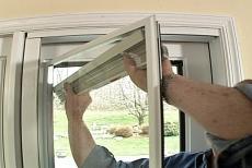 In my case, the frame is attached on the left side and along the top. I pull off the sill support just to be sure there aren't any screws through the bottom. Next, I take out the fixed door panel and sure enough, there are more screws down the right side of the frame.