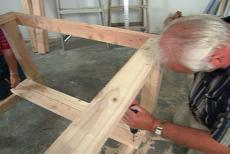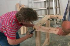 In just a few minutes, we cut to length, all the 2 by 4s for our bases. To make sturdy legs for our bases, we'll sandwich two 2 by 4s together, creating in effect, a 4 by 4. But first, Mel and I will cut matching notches in each piece of lumber.