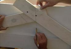 To lock the bevel gauge in position, we secure it with screws. Then I use a level and draw a plumb or a vertical line at the intersection of the two arms on the bevel gauge. Now that's the angle it's going to be on the base of the cupola.