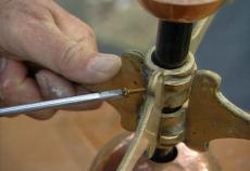 All right. So we'll adjust this. So I tighten the last screw. But it still seems like it's missing something. What have you got there? Oh - that is perfect. A sailboat for the coast of Maine. That's great. You know what, let's go downstairs, get a cup of coffee and wait for the wind to come up.