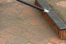 Yeah, it really does, doesn't it? Well we've got some gaps left in here. That's by design. Now we're going to fill those up and lock everything together. So it's back to the wheelbarrow for more sand which I spread over the patios with a stiff bristle broom.