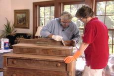 I'm visiting Phyllis Mackenzie in Rochester, New York. She has a treasured old dresser that she began stripping a while ago, but she stopped and put it aside because she wasn't sure how to refinish it. Well, today, we've done some more cleaning and stripping and things are beginning to look pretty good.