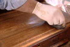 I like gel type stains because they're easy to control. They minimize drips, runs and splashes and they can be applied with a cloth or a brush. I make sure to thoroughly work them into crevices, details and carvings.