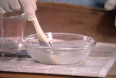 What we're going to get of these is with something called oxalic acid. You'll find this in a hardware or paint store under wood bleach. We want to add this to some hot water. As hot as you can get it out of the tap. The hotter the better.