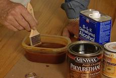 And I'm going to brush on kind of a tinting or a toning coat and I think it's gonna tie these boards in so that they'll match a little ,more closely. The shellac dries quickly. In just a few minutes, I can applying the polyurethane.