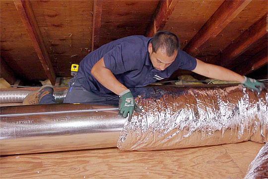 Ductwork Upgrades. While the majority of my ductwork is fine as is, there were a couple of improvements the installers recommended. The first involved replacing a section of flexible duct with a rigid sheet metal section which will be wrapped in a thicker insulation. This will improve air flow while keeping the air inside cooler. Two other smaller flexible feeder ducts were replaced with duct having better insulation value.